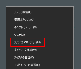 出たメニューから、「デバイス マネージャー」をクリックします。