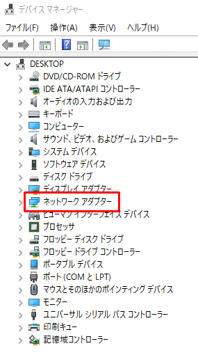 出た画面で、「ネットワーク アダプター」をダブルクリックして展開します。