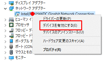 ネットワークアダプターを一度無効にしてから有効にする