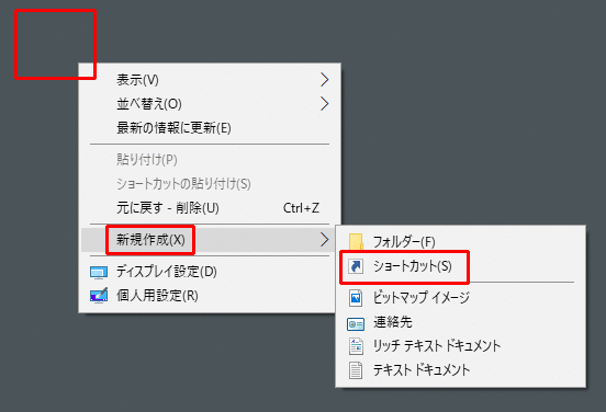 メニューが出た場合は、「ショートカットをここに作成」をクリックします。