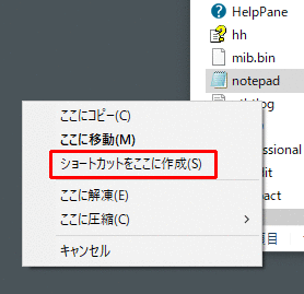 出たメニューから、「ショートカットをここに作成」をクリックします。