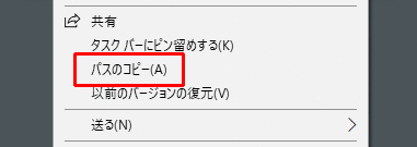 出たメニューから、「パスのコピー」や「パスとしてコピー」等をクリックします。