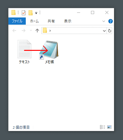 テキストファイルのアイコンをクリックしたまま、メモ帳のアイコンの上まで持って行き、