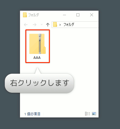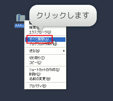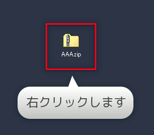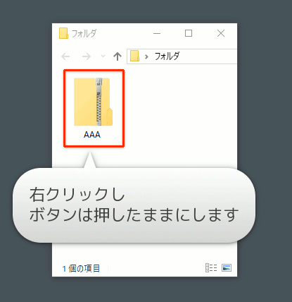 対象の圧縮ファイルを右クリックし、マウスの右ボタンは押したままにします。