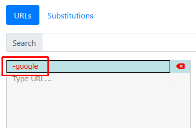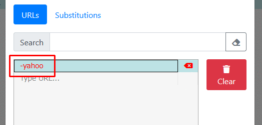 下の欄の「Type URL...」をダブルクリックし、「-yahoo」を半角で書き込み、Enterキーを押します。