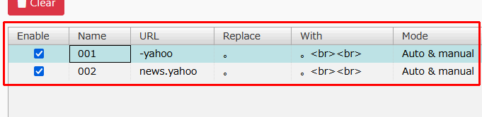 (例:基本的に全ページに改行を入れる、しかし、「yahoo」を含むURLのページには改行を入れない、しかし、「news.yahoo」を含むURLのページには改行を入れる、等。)