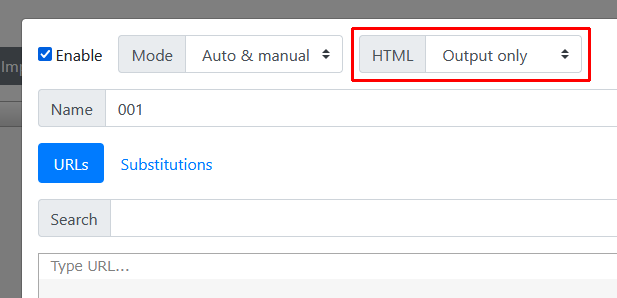 「HTML」の欄をクリックし、「Output only」をクリックします。