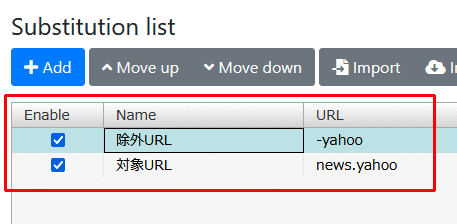 - ただし、「yahoo」を含むURLは処理しない