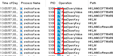 青いブロックのアイコンは、レジストリ(Windowsの設定ファイル)処理を表しています。