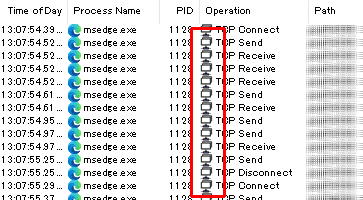 例えば、ファイル処理だけ調査したい場合は、上部ツールバーの、右から5つのボタンの内、右から4番目の、黄色っぽいフォルダのボタンだけが押された状態(水色背景)にします。