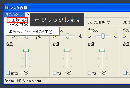 (※無い場合は、キーボードのWindowsロゴのキーを押しながら「R」キーを押し、出た小窓に「sndvol32」と半角で打ち込み、Enterキーを押してください。)