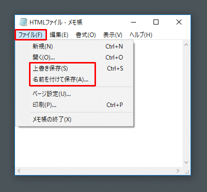 メモ帳でファイルを保存する方法です。