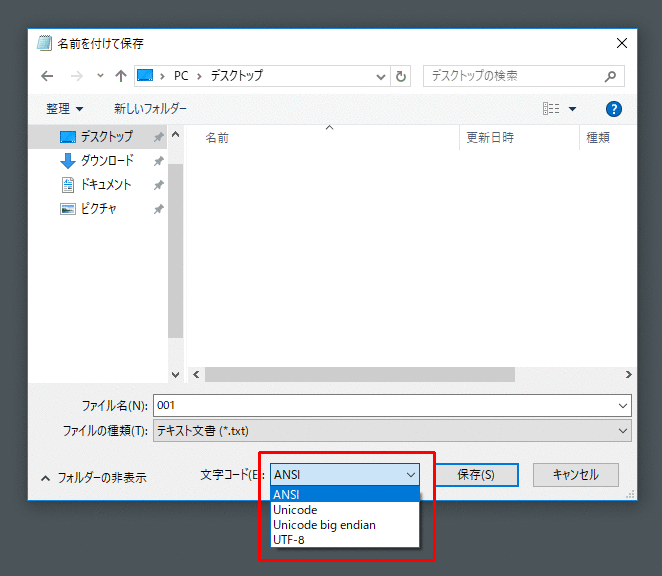 メモ帳で保存する